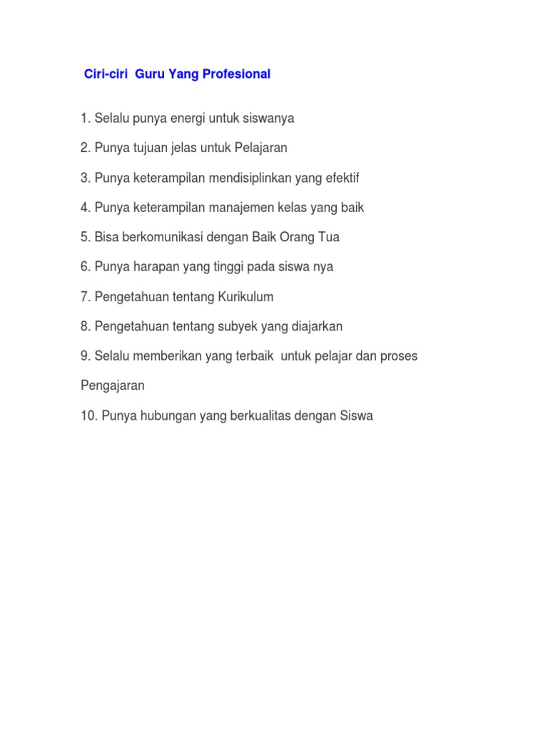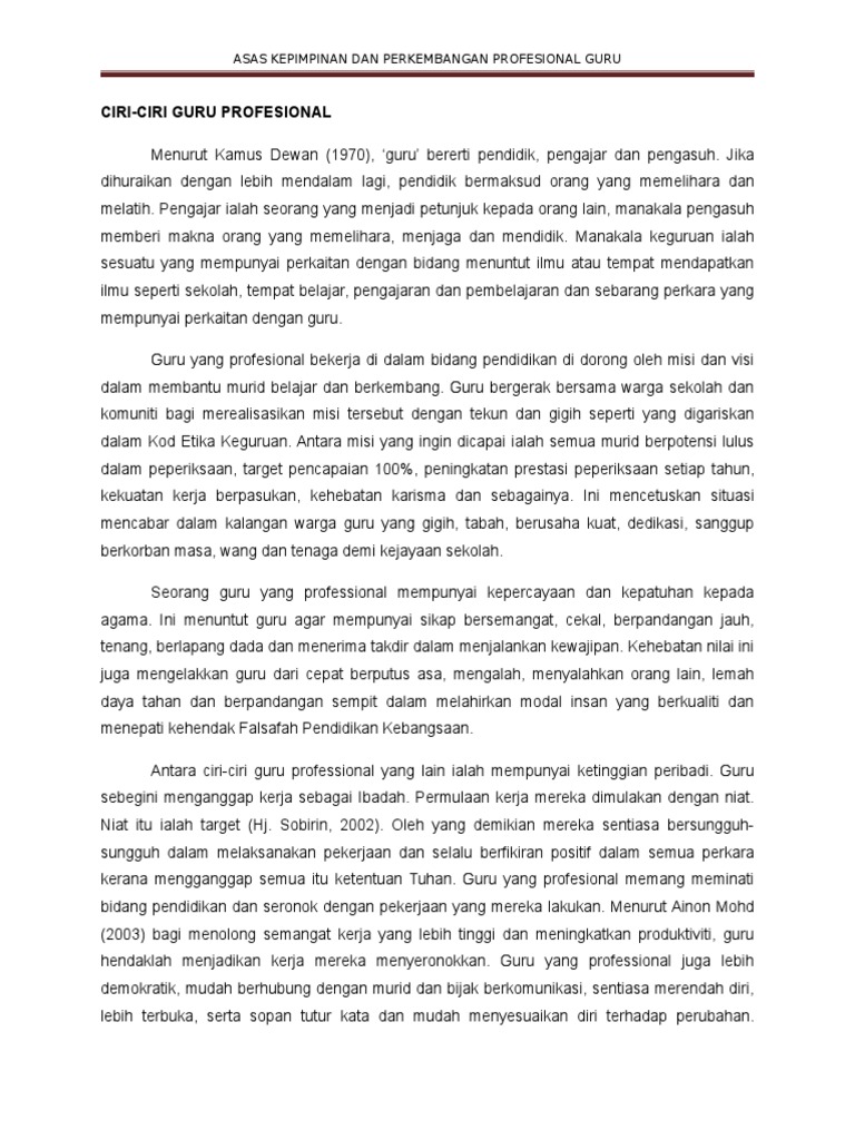 Ciri Ciri Guru Sebagai Seorang Profesional Pdf